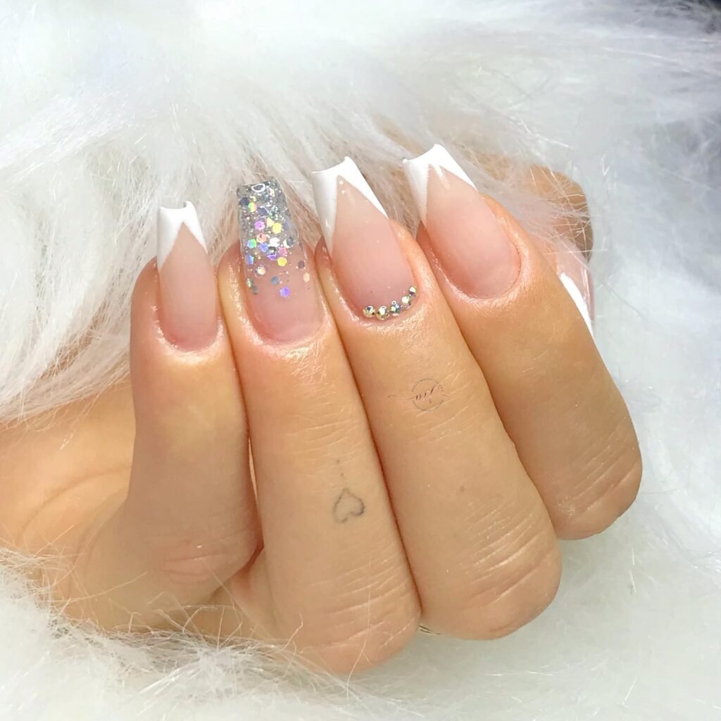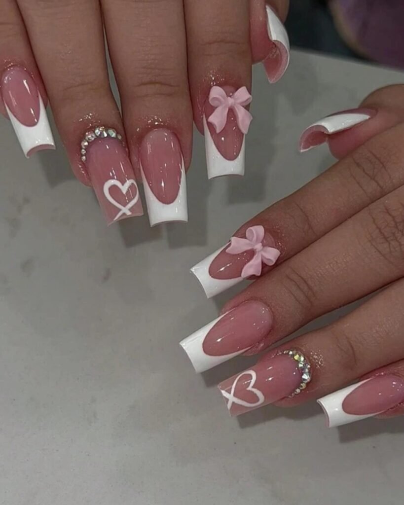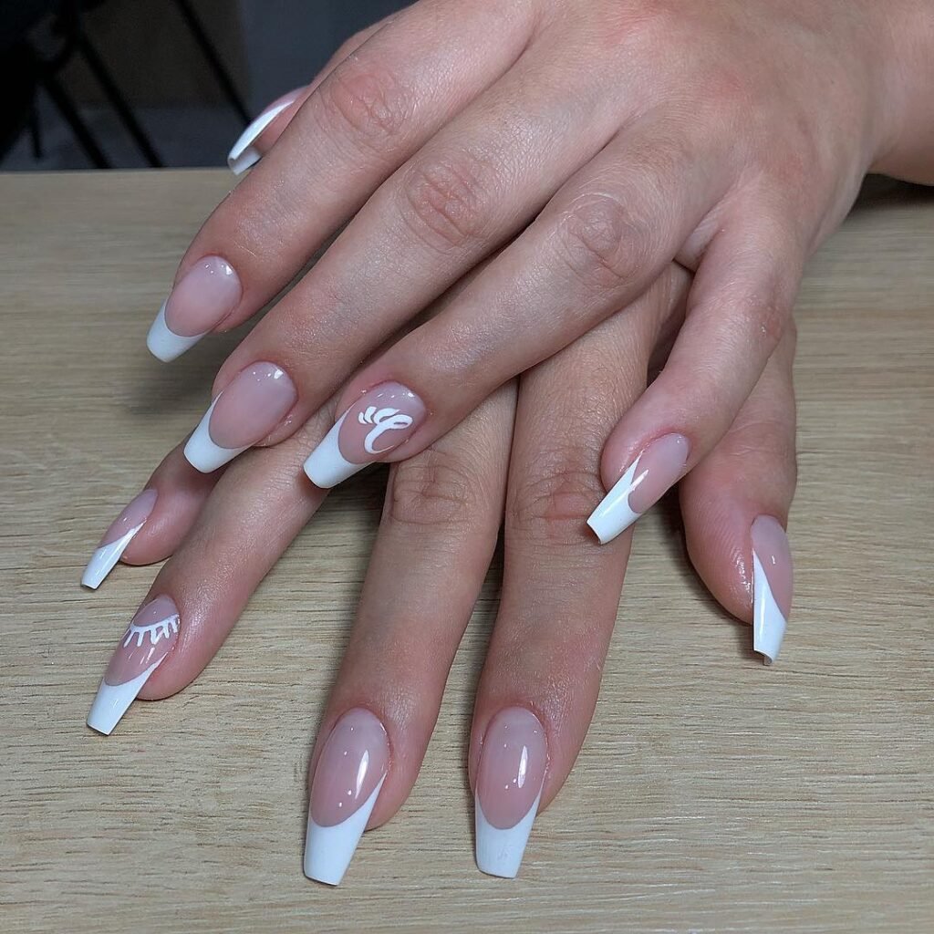 Easy French Tip Ballerina Nails Ideas French tip ballerina nails ideas are surprisingly beginner-friendly. Create a soft ombre base and finish with a clean white tip, then add one delicate ribbon detail. This style is forgiving and grows out gracefully, making it ideal for at-home manicures or salon visits when you’re short on time.