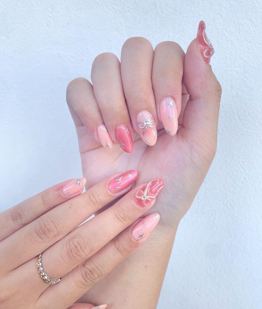 Simple Accent Bow Nails for Quick Glam One of the easiest ways to try ballerina nails is with accent bow nails. Paint most nails in soft pink and add a single hand-painted or sticker bow on your ring finger. This low-effort approach delivers high impact and works beautifully on press-on nails too – perfect for beginners wanting cute ballerina nails ideas.