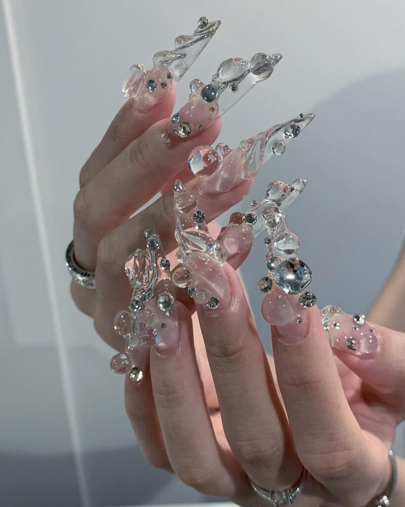 Sheer Glass Nails for Crystal-Clear Elegance Glass nails have become one of the biggest trends right now. Using multiple thin layers of clear or lightly tinted builder gel, you get an ultra-sheer, high-shine finish that looks like real glass reflecting light. The effect is incredibly fresh and healthy-looking. Add a top coat with maximum gloss and your nails will catch light beautifully all day long.