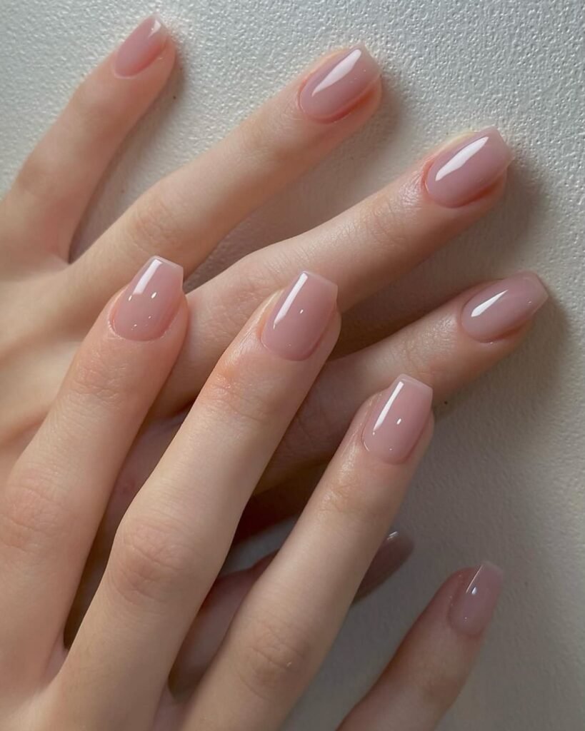 Short Square or Oval for Practical Everyday Wear If you prefer shorter nails for daily life, square or oval shapes work wonderfully. These practical shapes still look polished when done in clear or sheer tones. They’re comfortable, strong, and maintain that clean girl aesthetic perfectly.