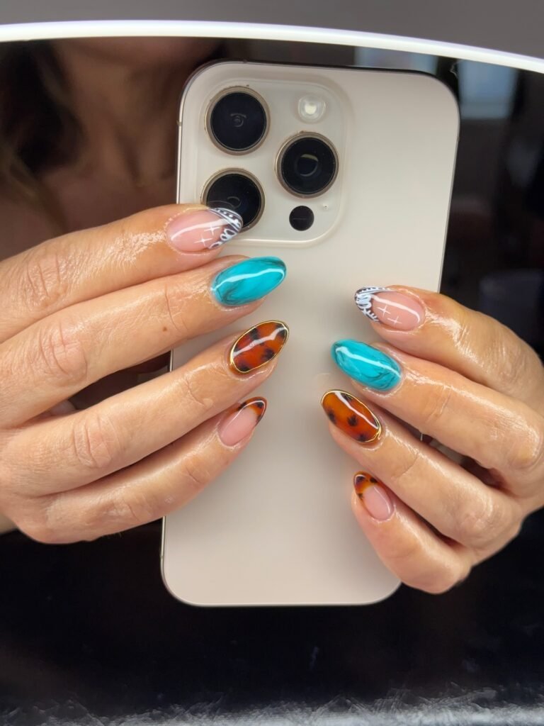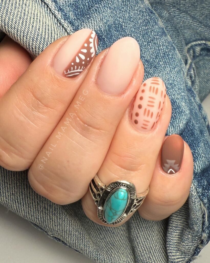 Warm browns, deep burgundies, and rich turquoise tones are staples for Nashville nails. These colors remind people of leather cowboy boots and open fields. Pairing a soft taupe base with darker brown accents creates a sophisticated look that works for any season. Adding a touch of gold foil makes these tones feel elevated and ready for a night on Lower Broadway.