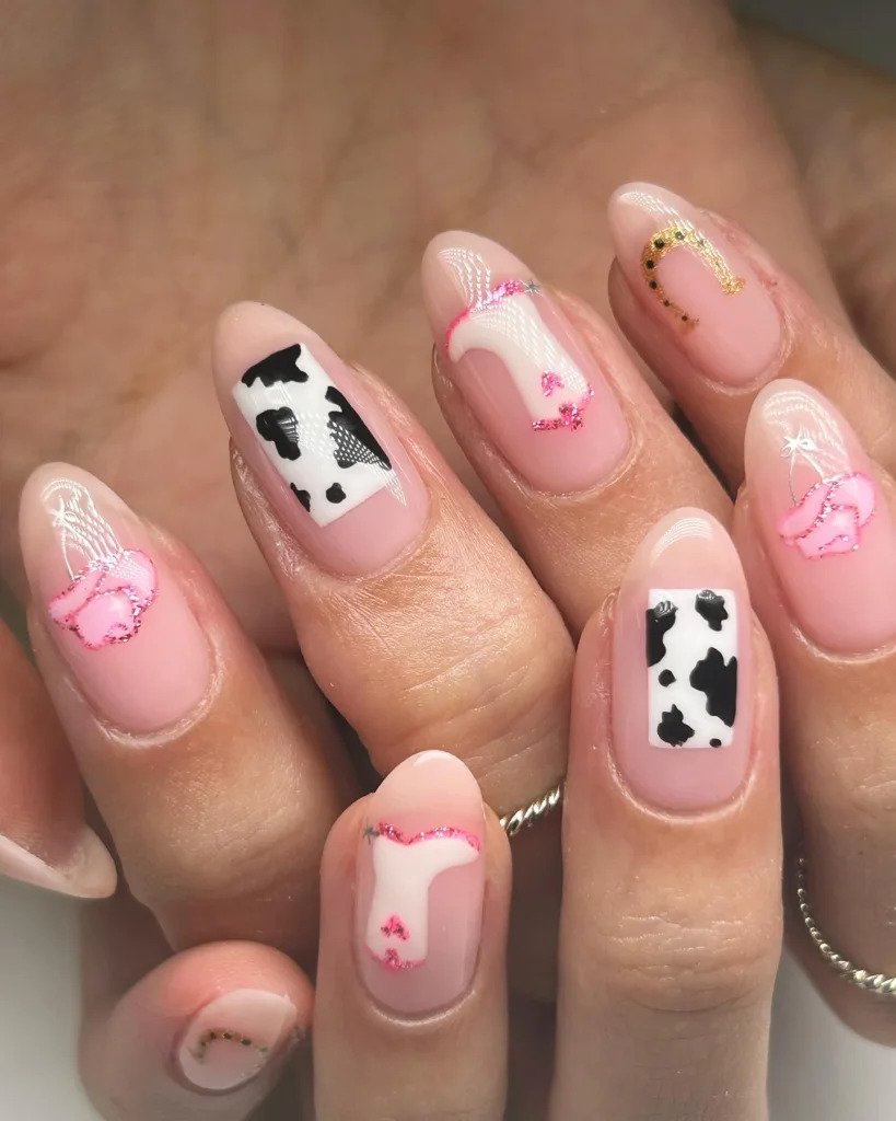 Short round or square nails are ideal if you want Music City vibes without sacrificing practicality. Even with shorter lengths, you can achieve stunning cow print designs or simple rhinestone accents on one or two nails. These are perfect for busy women who still want to show their love for Nashville.