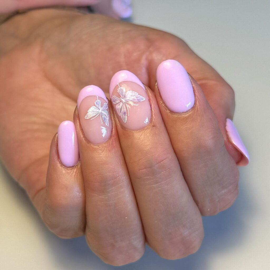 Sometimes less is more. A clean purple shade on short almond nails delivers instant Olivia Rodrigo vibes. Add one tiny chrome star or butterfly on the ring finger for that signature touch. This low-maintenance option works perfectly for school, work, or casual days and still feels connected to her aesthetic without any effort.