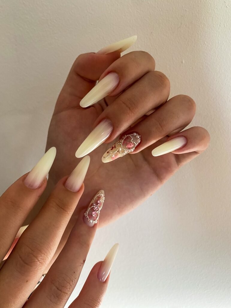 Oval nails offer the perfect middle ground between square and stiletto. Their rounded edges echo the gentle curves of coquette-inspired elements like tiny hearts or micro pearls, creating harmony from base to tip.
