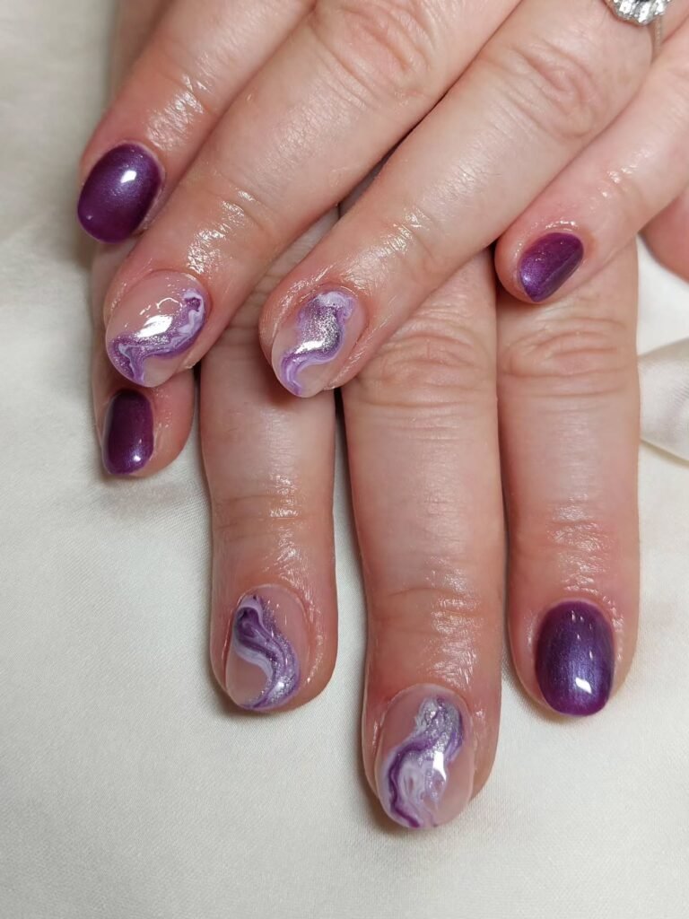 You only need a handful of items: a good base coat, sheer jelly polishes, a fine detail brush, and a chrome powder or magnetic cat-eye top coat. Gel or dip systems give longer wear, but high-quality lacquer works beautifully for short-term experiments.