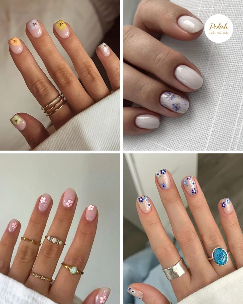 Short rounded or soft square nails prove you don’t need length to achieve the dreamy look. These practical shapes highlight minimalist designs and are ideal for anyone who types, gardens, or simply wants low-maintenance elegance.
