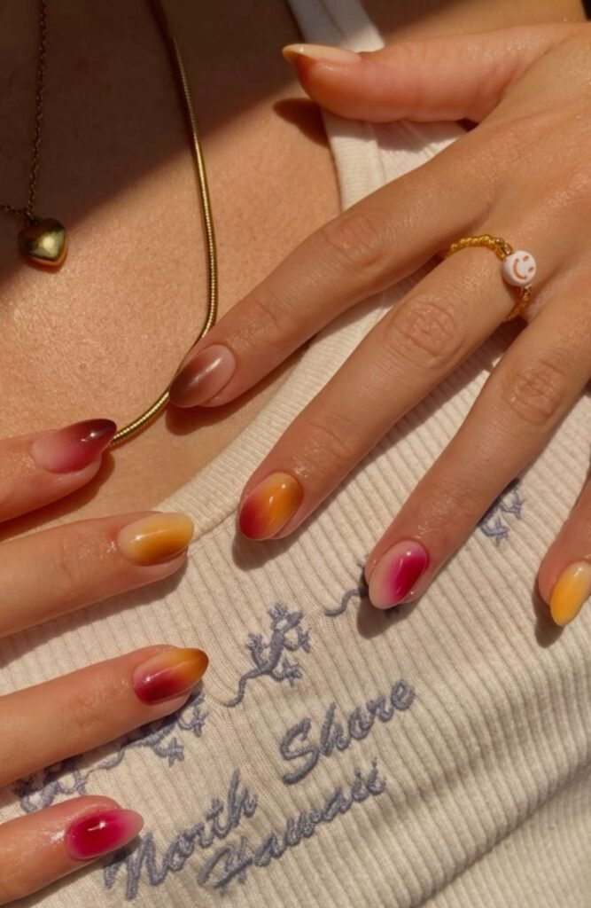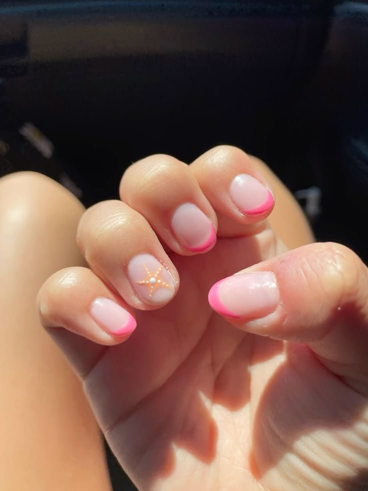 Nothing says summer like a pop of neon. Think electric pink tips, lime green accents, or a bold orange detail on one nail. Keeping the base soft or nude lets those vibrant tones shine without feeling too busy.