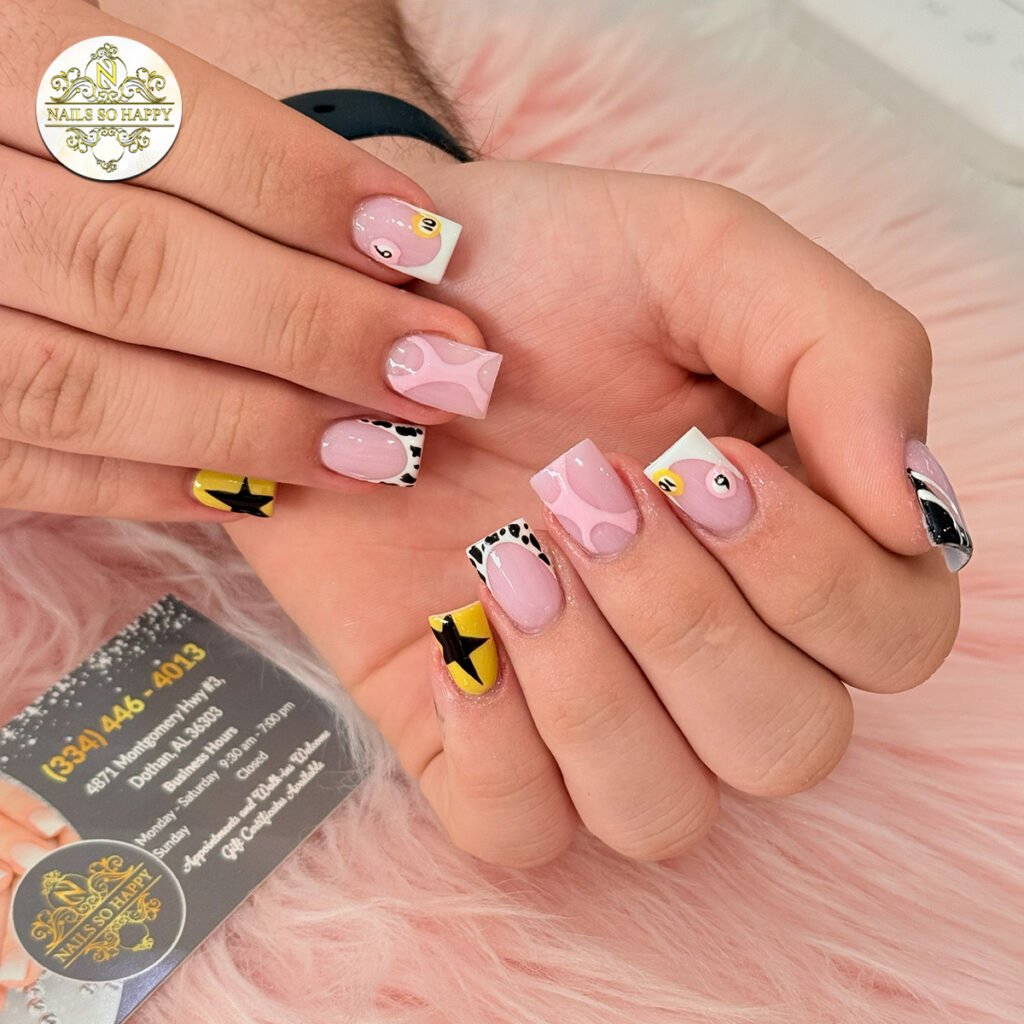 Patterns can do wonders for basic short squares and turn them into mini masterpieces. Keep patterns on the smaller side in order to avoid overcrowding the limited space.