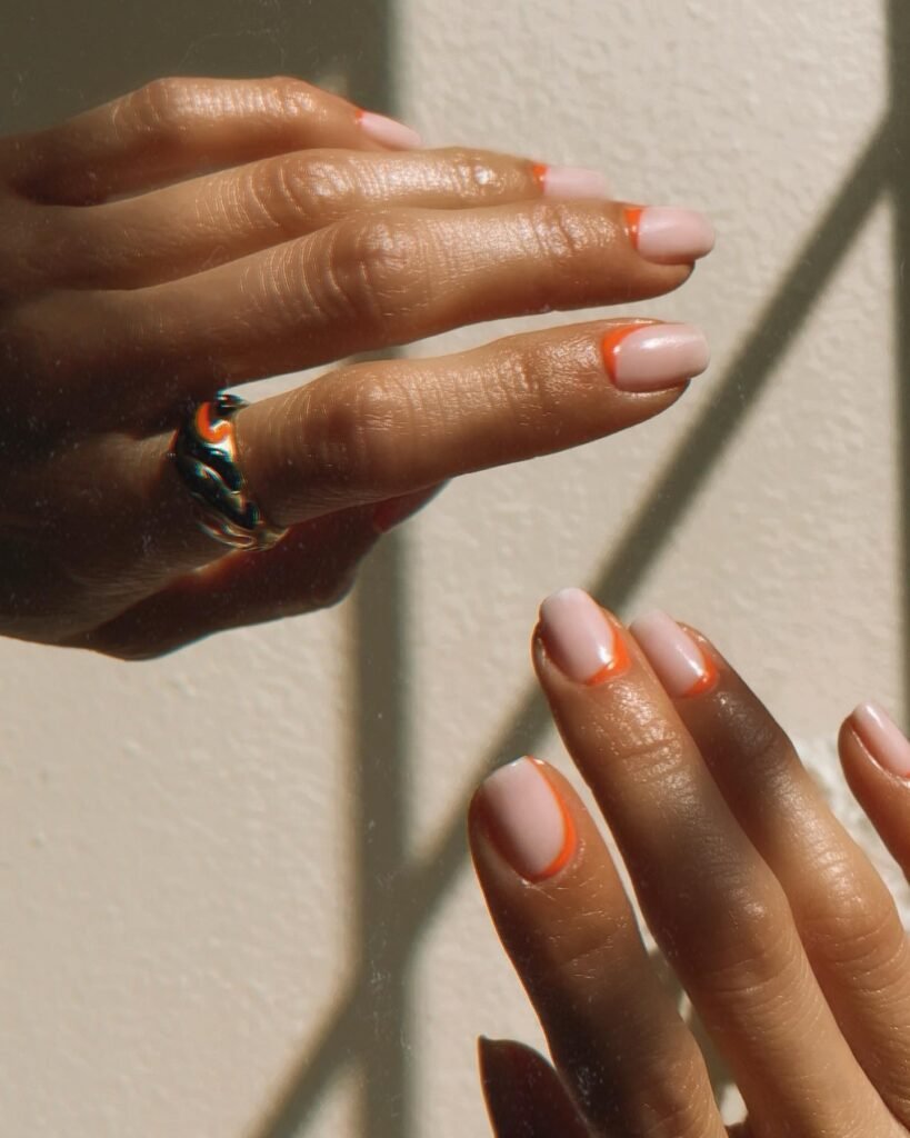 Leave bits of empty nail to show your natural nail health. Use thin lines to outline bits of design for a modern touch.