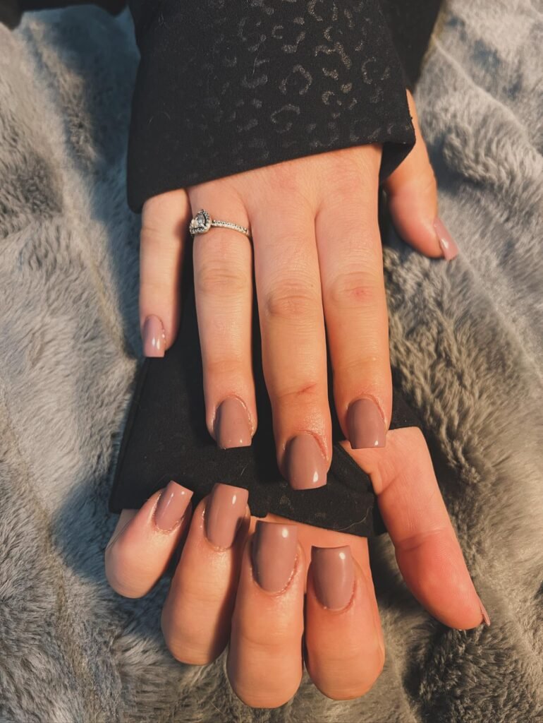 Slightly rounded corners for a squoval hybrid nails. This softer take is huge for comfort whilst keeping the square’s bold structure.
