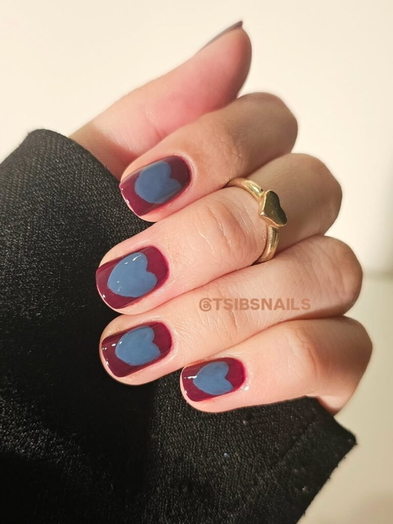 Berry and deep red gives a rich and fancy feel to the nails. Matte top coat gives a modern feel and is great for winter.