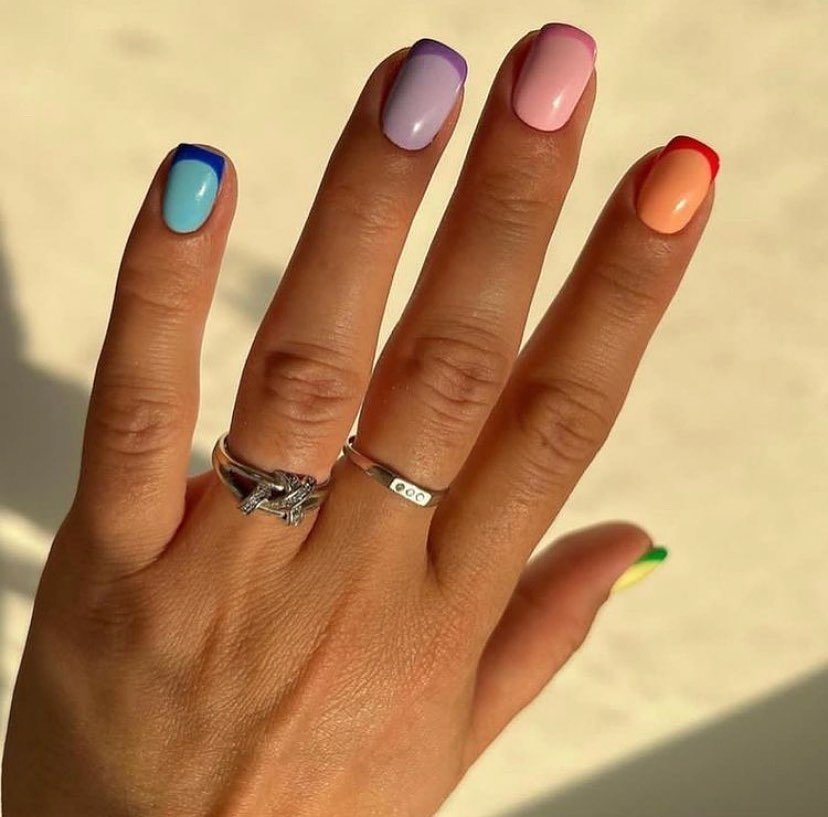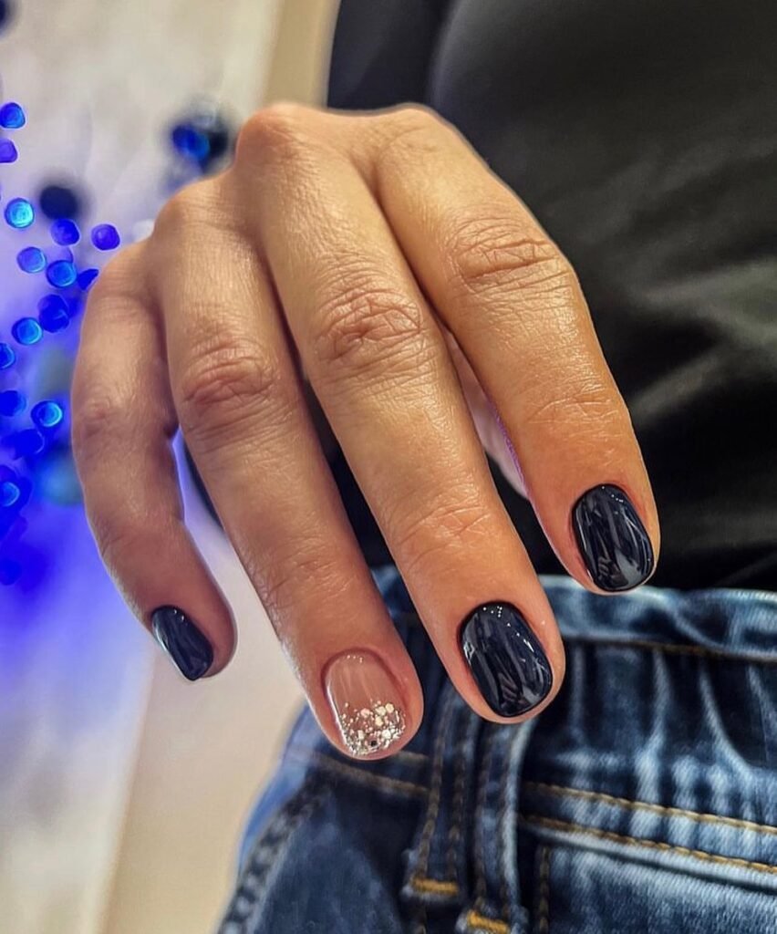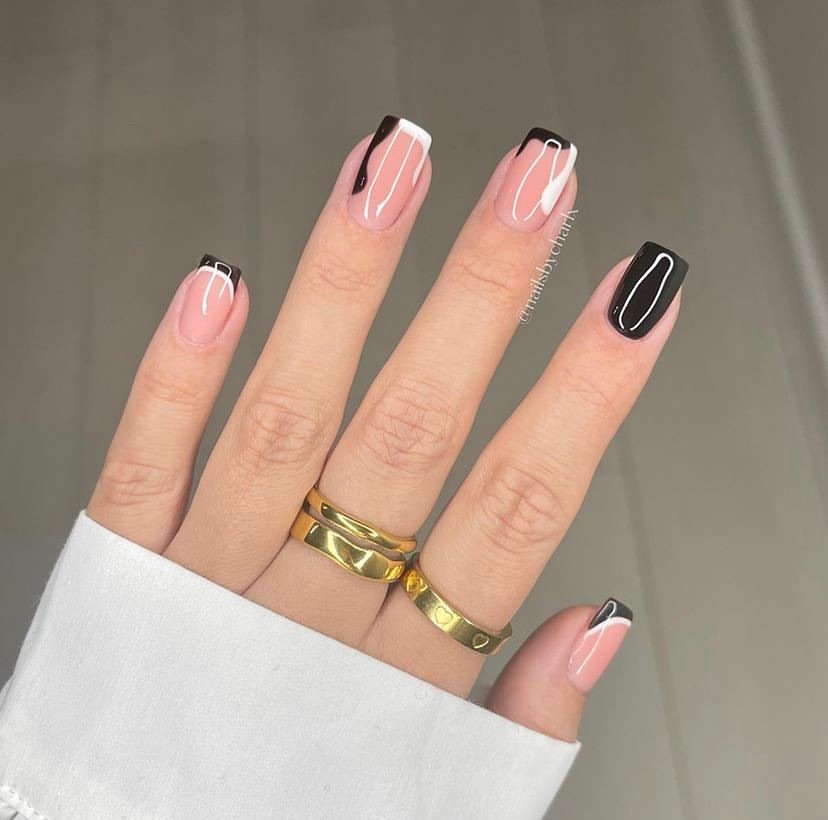 When colors are put on short nails, the tones may be deep, like navy, wine, or black, giving a edgy feel to the look.