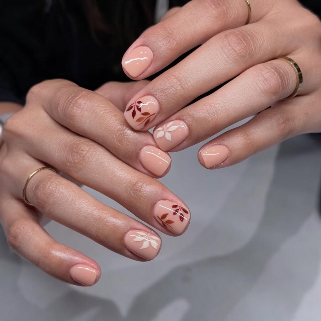 Short nails get sophistication and warmth from soft browns, caramels, and beiges.