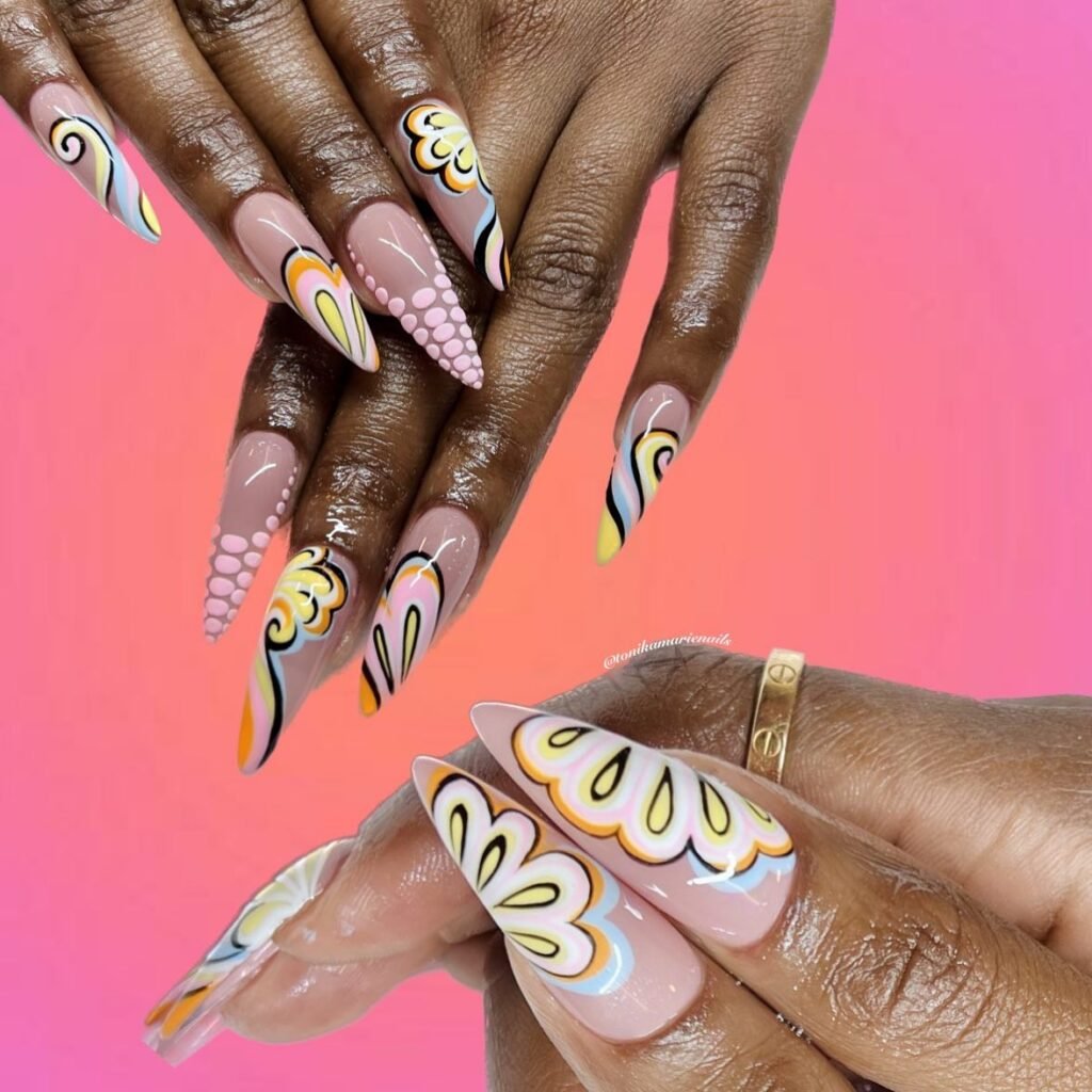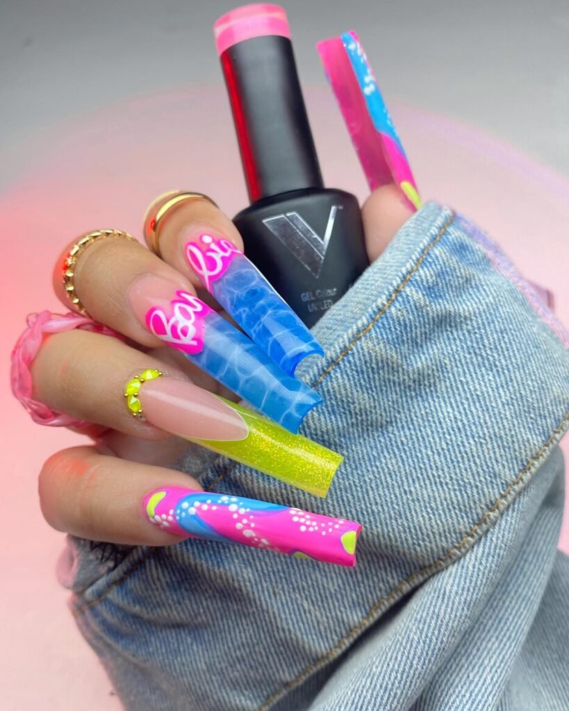 Barbie nail inspirations allow for self-empowerment, and are a reminder to self-express, and use nails to embrace one’s self by drawing acrylics in a playful manner in a world that can be serious and monotonous at times.