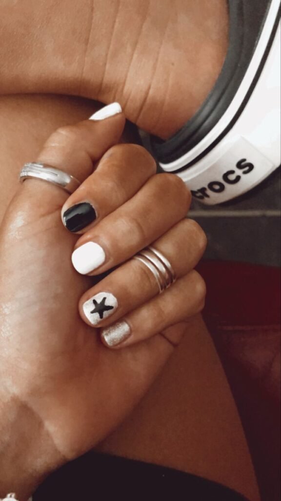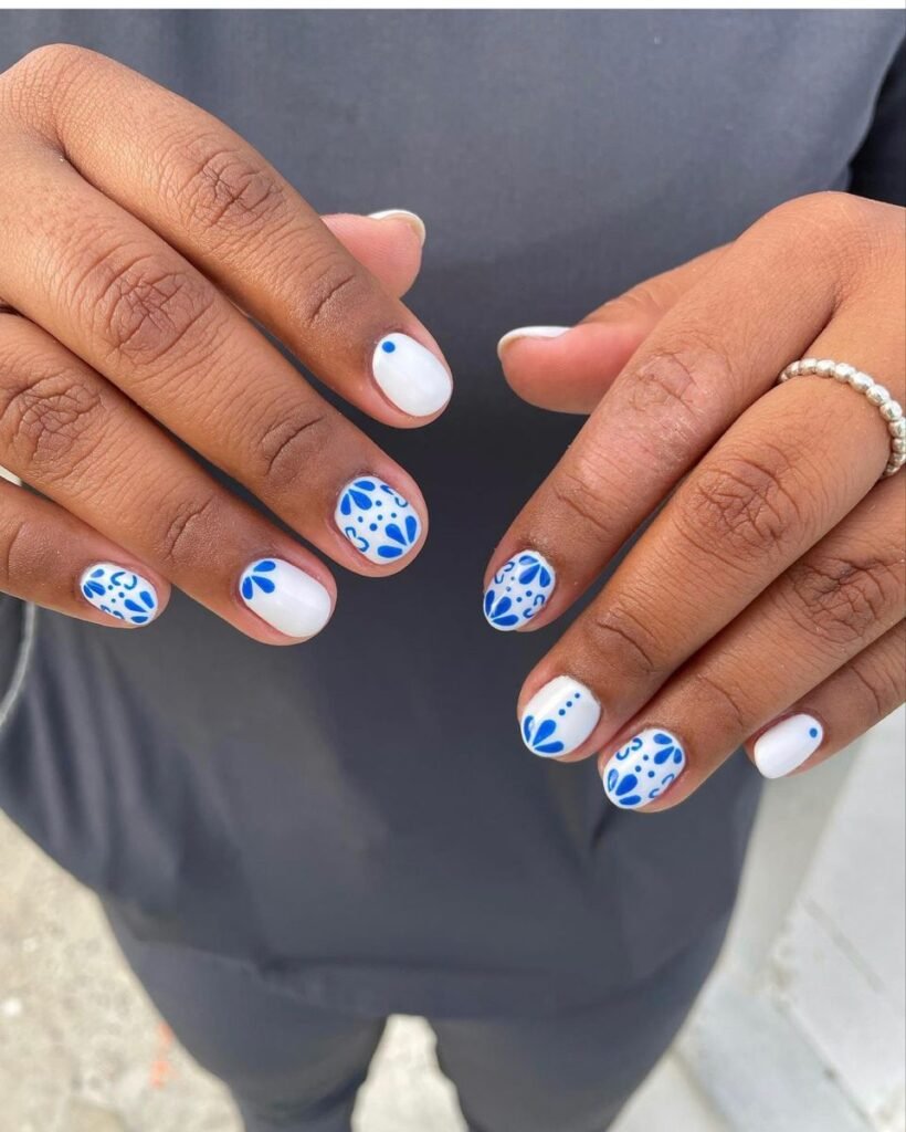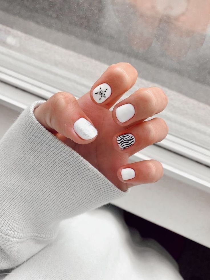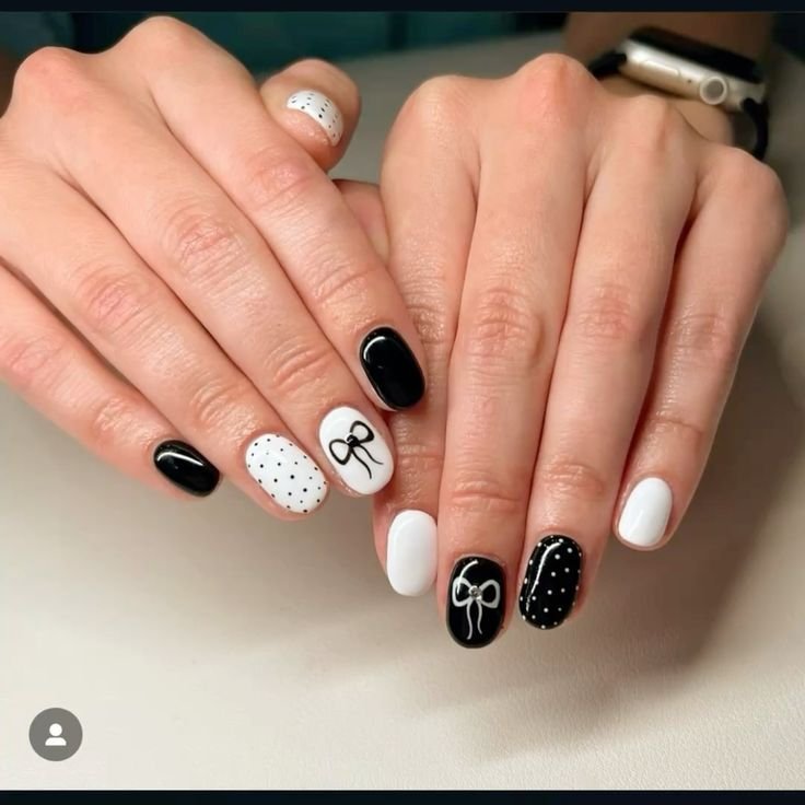 Black and white is always a winning combo. Clean lines or abstract shapes over a white base give your nails a bold, modern edge without feeling overdone.