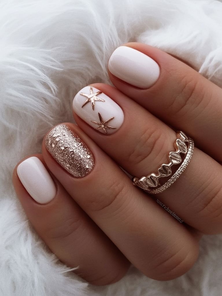 A few touches of gold can make all the difference. Random flecks or delicate accents instantly elevate a simple manicure into something eye-catching and unique.